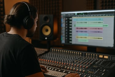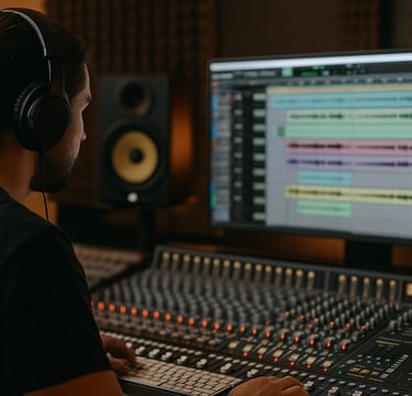 O processo de transformar uma ideia sonora em uma faixa bem acabada, pronta para o mundo ouvir. Vai da criação dos arranjos à mixagem e masterização, garantindo que cada som tenha seu brilho. Dá vida à identidade musical do artista com qualidade e personalidade.